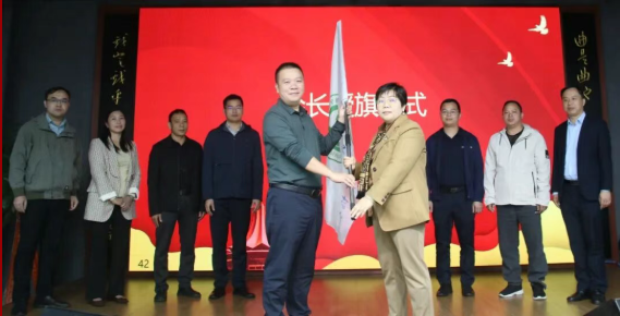 ▲陈庆福会长(第一、二届)向赵春娥会长(第三届)授旗