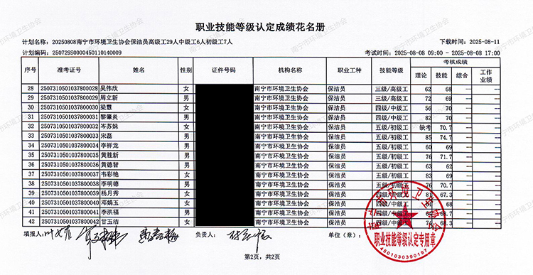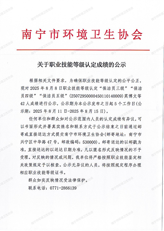 关于职业技能等级认定成绩的公示(计划编码:250729S0000450110140009)