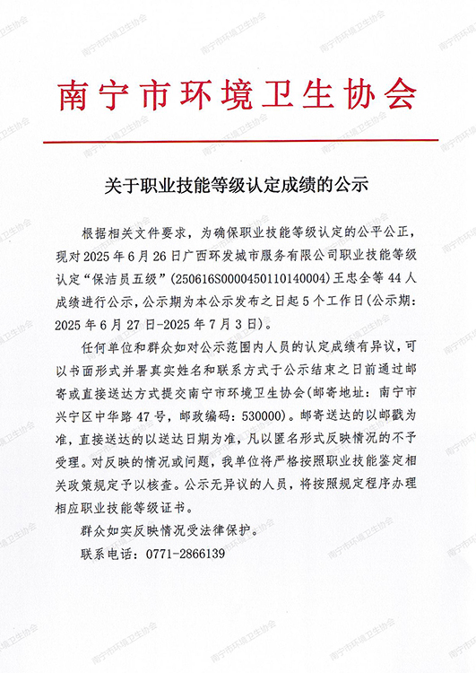 关于职业技能等级认定成绩的公示(计划编码:250616S0000450110140004)