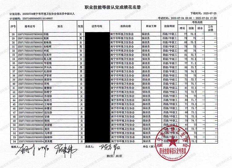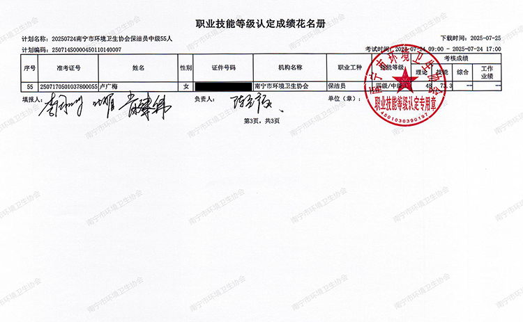 关于职业技能等级认定成绩的公示(计划编码:250714S0000450110140007)