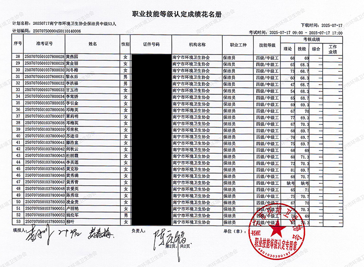 关于职业技能等级认定成绩的公示(计划编码:250707S0000450110140006)