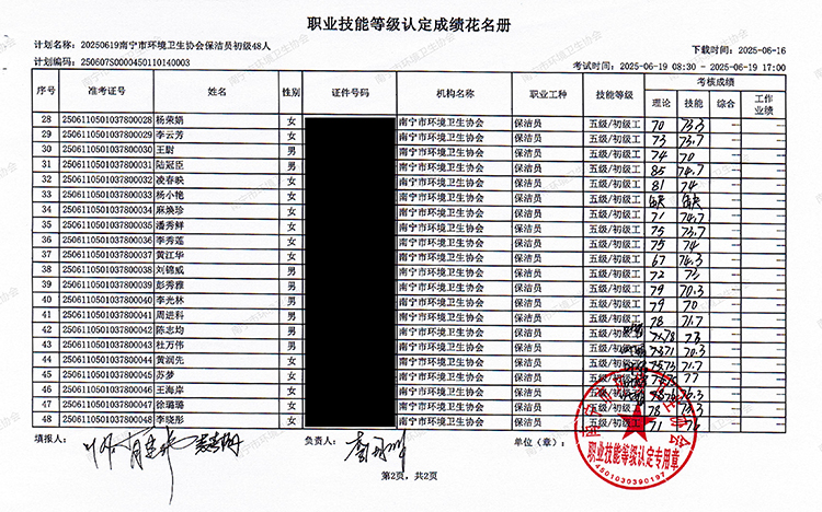 关于职业技能等级认定成绩的公示(计划编码:250607S0000450110140003)