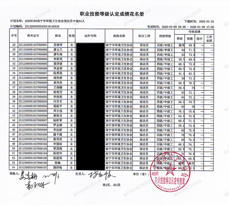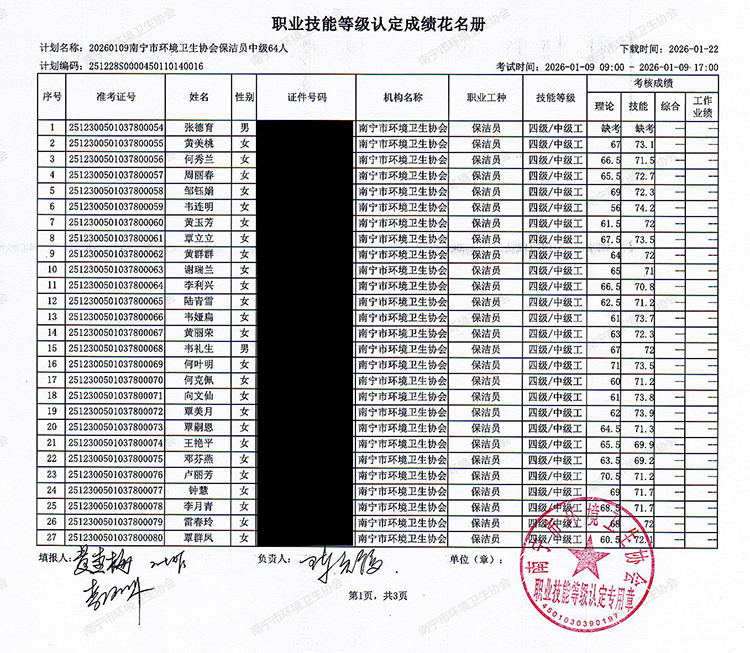 关于职业技能等级认定成绩的公示(计划编码:251228S0000450110140016)
