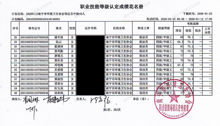 关于职业技能等级认定成绩的公示(计划编码:260103S0000450110140001)