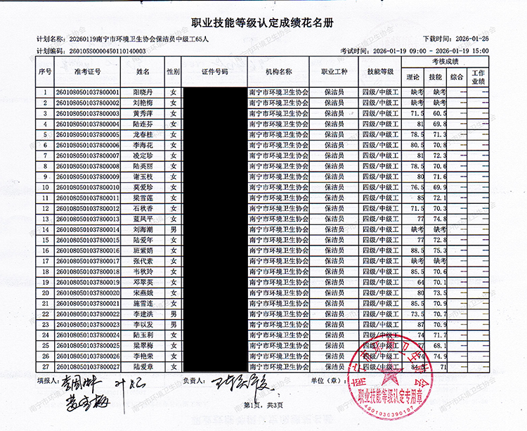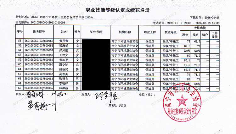关于职业技能等级认定成绩的公示(计划编码:260105S0000450110140003)