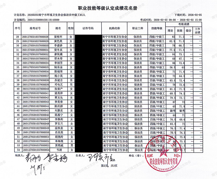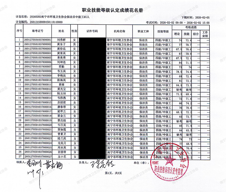 关于职业技能等级认定成绩的公示(计划编码:260121S0000450110140009)