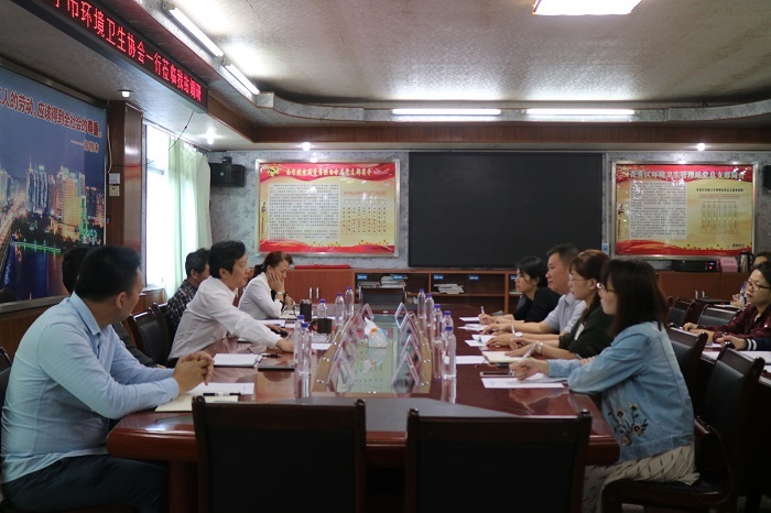 随后,陈会长向青秀区环卫站领导班子汇报了协会的工作情况,希望青秀区环卫站继续给与支持。陈会长提到,今年协会的三大工作任务:制定标准、联合采购和开展技能培训。