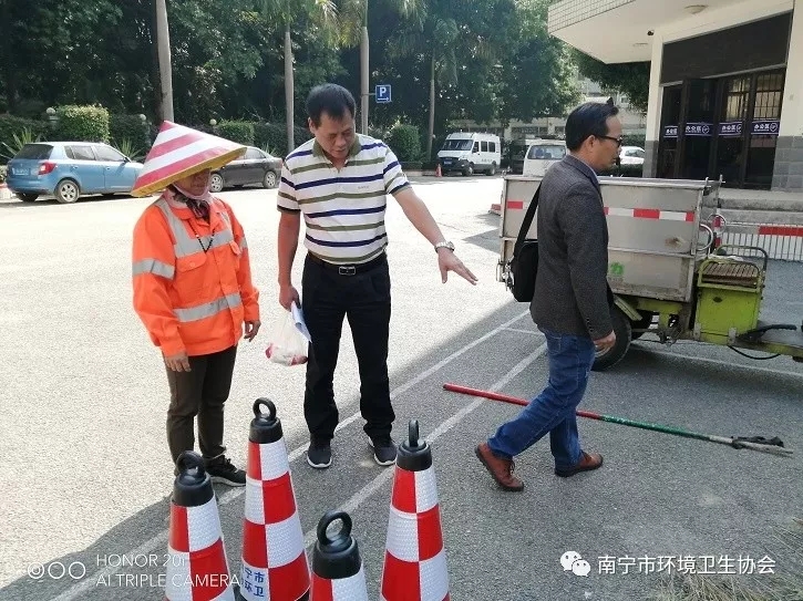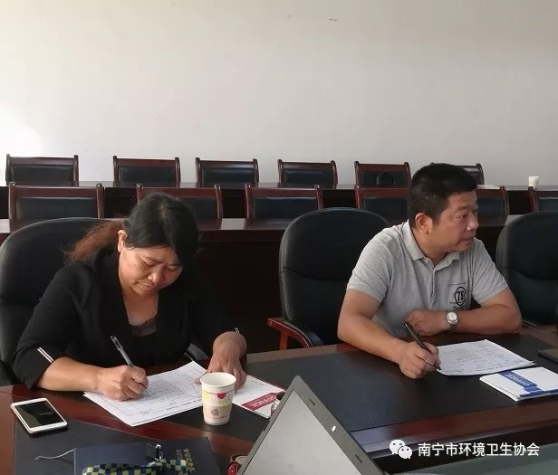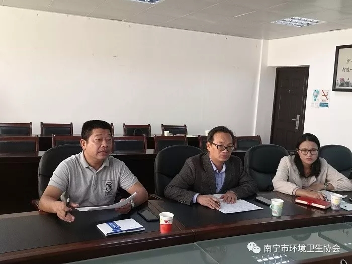 南宁市环境卫生协会陈庆福会长和李周琳秘书长、南宁市环境卫生管理处黄明艳经济师、南宁市兴宁区市政环卫管理站曾添昌副站长和兰小宁副站长、南宁市江南区市政环卫管理站韦毅晖主任和卢世伟副主任、南宁市青秀区环境卫生管理站、南宁市西乡塘区环境卫生管理站等专家代表11人参加会议。