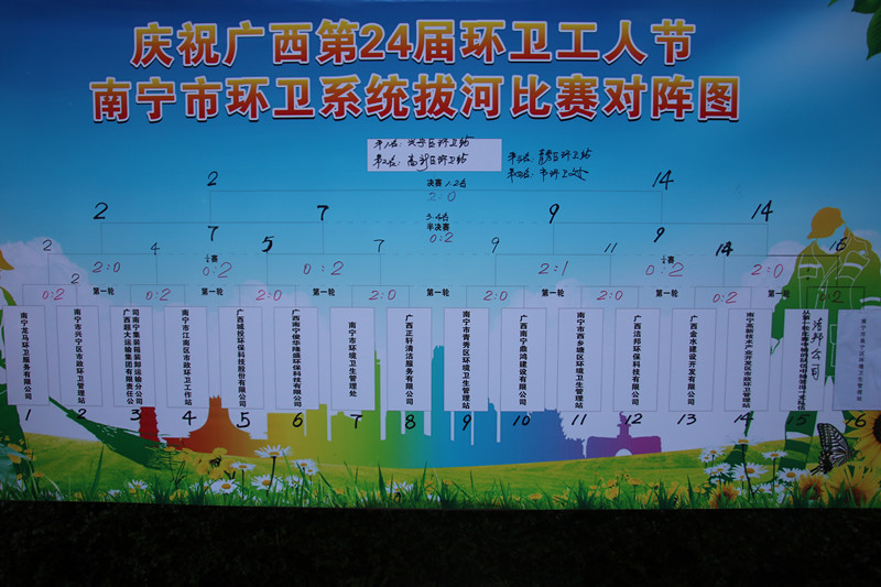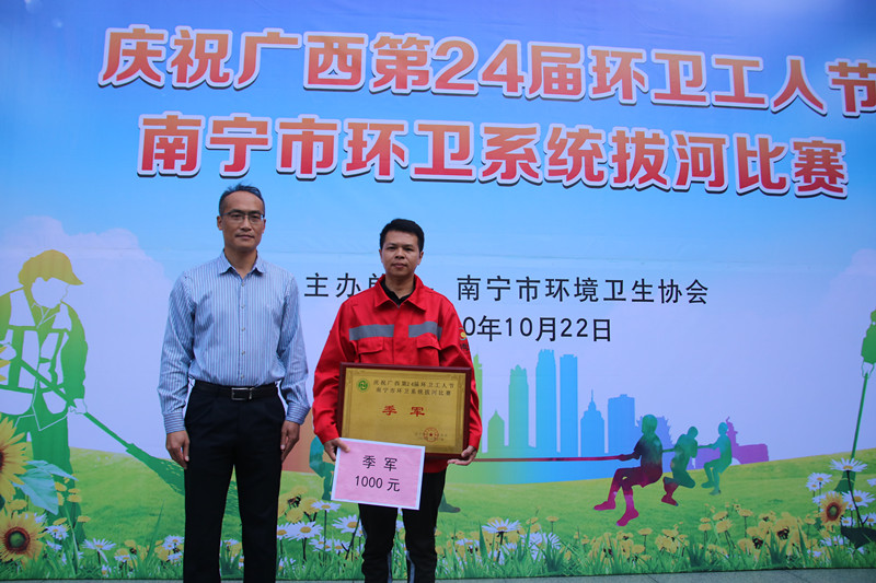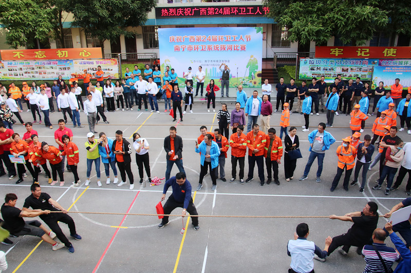 为庆祝广西第24届环卫工人节,丰富环卫行业干部职工业余文化生活,2020年10月22日,南宁市环境卫生协会举办南宁市环卫系统拔河比赛,来自南宁市环卫系统企事业单位的15支队伍约200名运动员参加了本次活动。