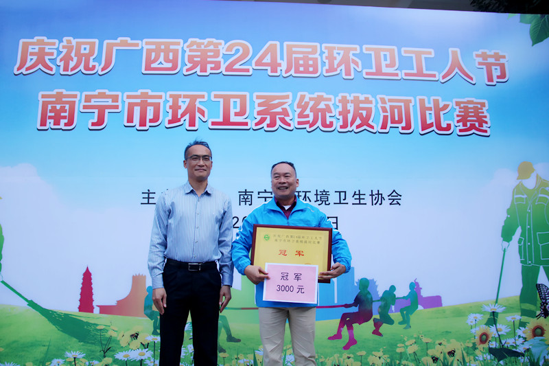 南宁市环境卫生协会陈庆福会长为获奖队伍颁奖