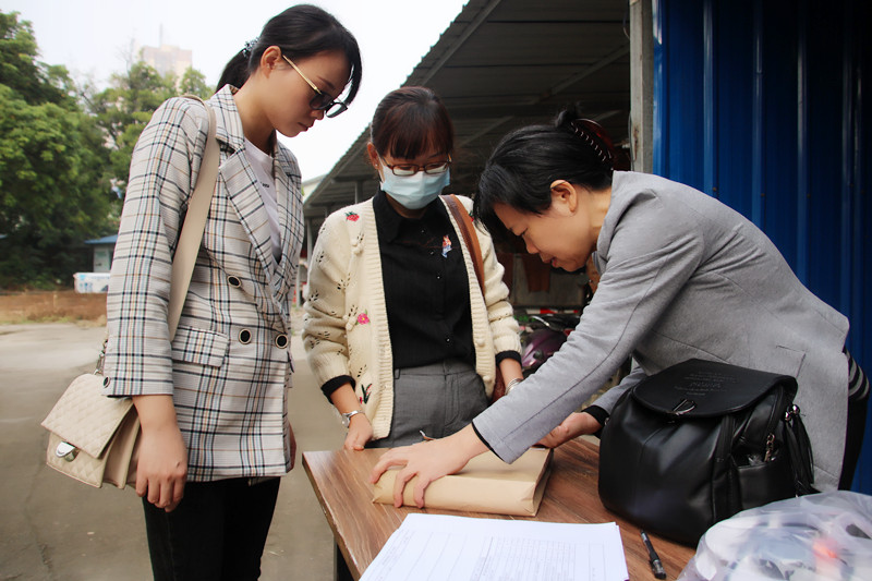 考评员与监考员(人社局)现场开启密封的考评试卷