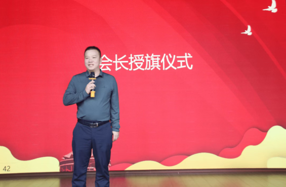 ▲陈庆福会长(第一、二届)向赵春娥会长(第三届)授旗