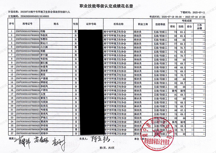 关于职业技能等级认定成绩的公示(计划编码:250626S0000450110140005)