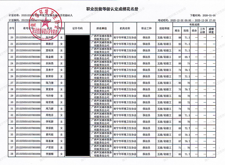 关于职业技能等级认定成绩的公示(计划编码:251220S0000450110140013)