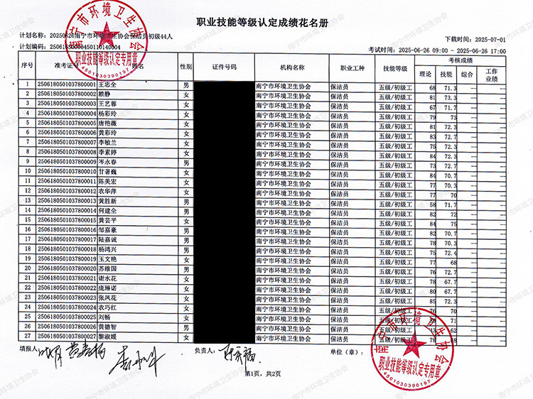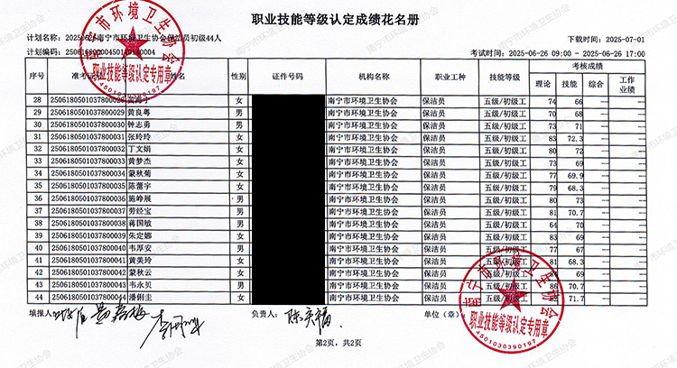 关于职业技能等级认定成绩的公示(计划编码:250616S0000450110140004)