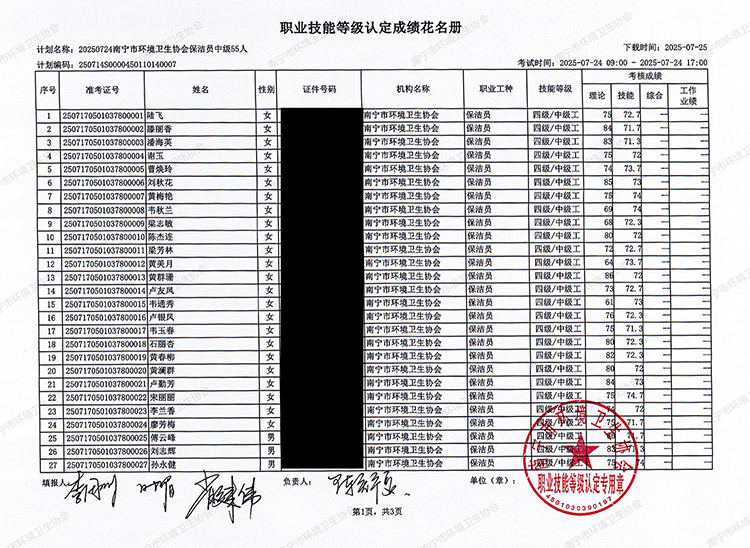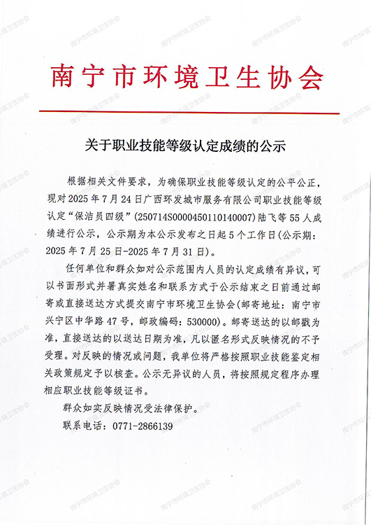 关于职业技能等级认定成绩的公示(计划编码:250714S0000450110140007)