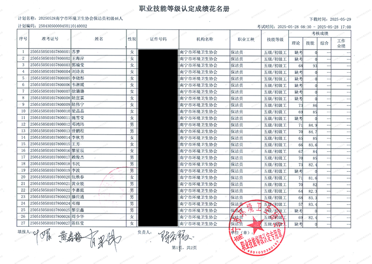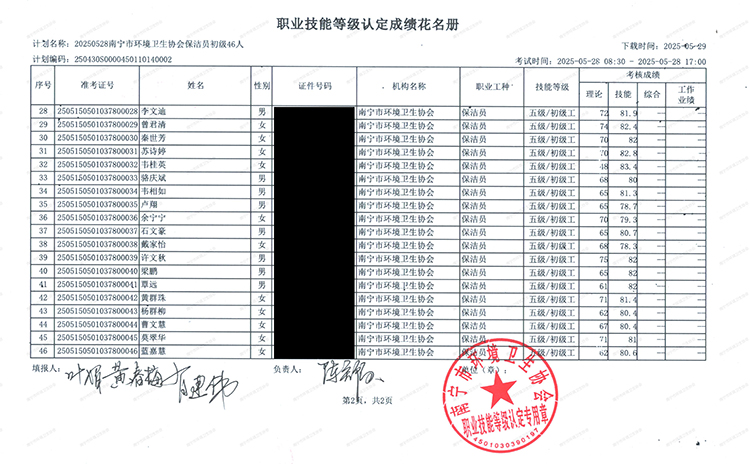 关于职业技能等级认定成绩的公示(计划编码:250430S0000450110140002)