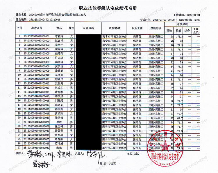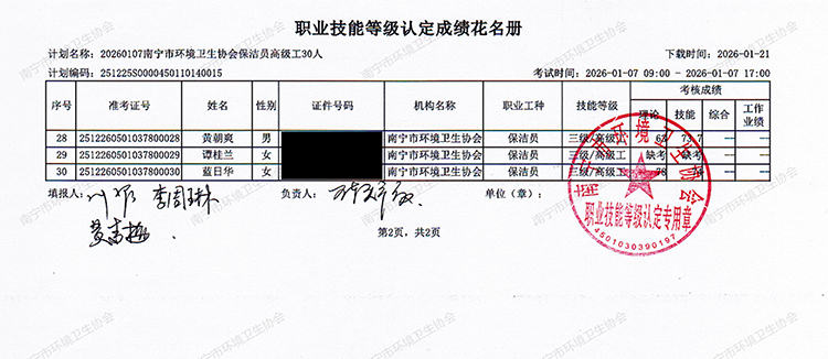 关于职业技能等级认定成绩的公示(计划编码:251225S0000450110140015)