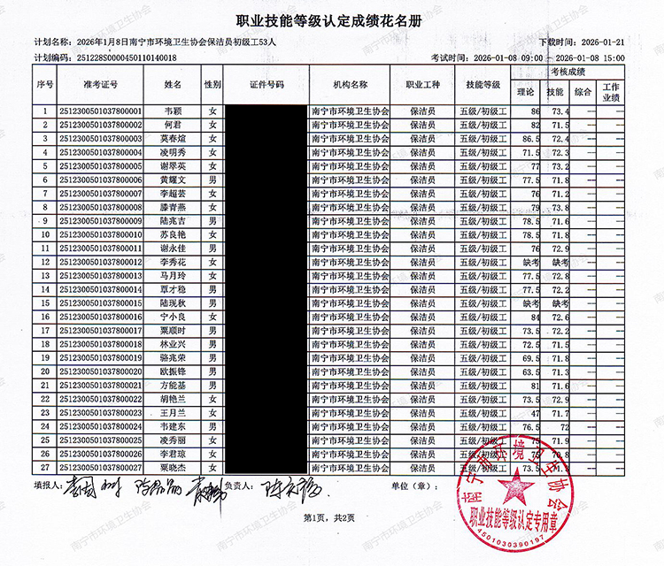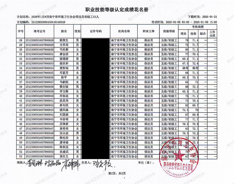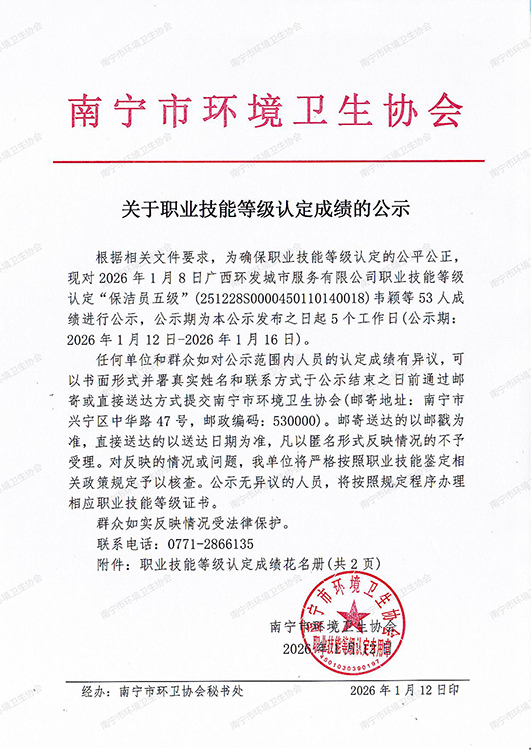关于职业技能等级认定成绩的公示(计划编码:251228S0000450110140018)