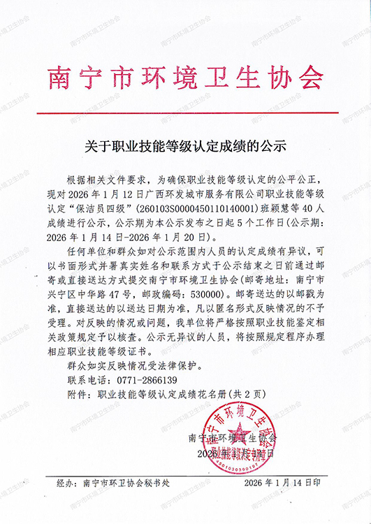 关于职业技能等级认定成绩的公示(计划编码:260103S0000450110140001)