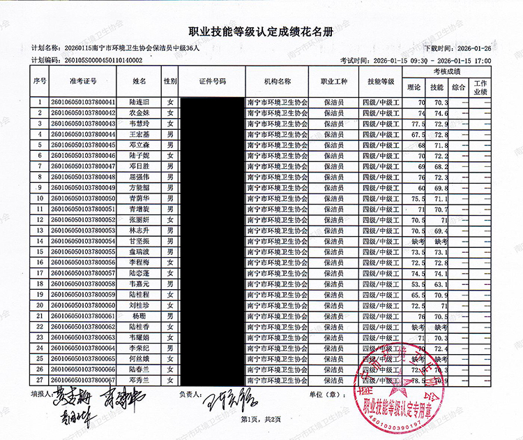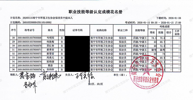 关于职业技能等级认定成绩的公示(计划编码:260105S0000450110140002)