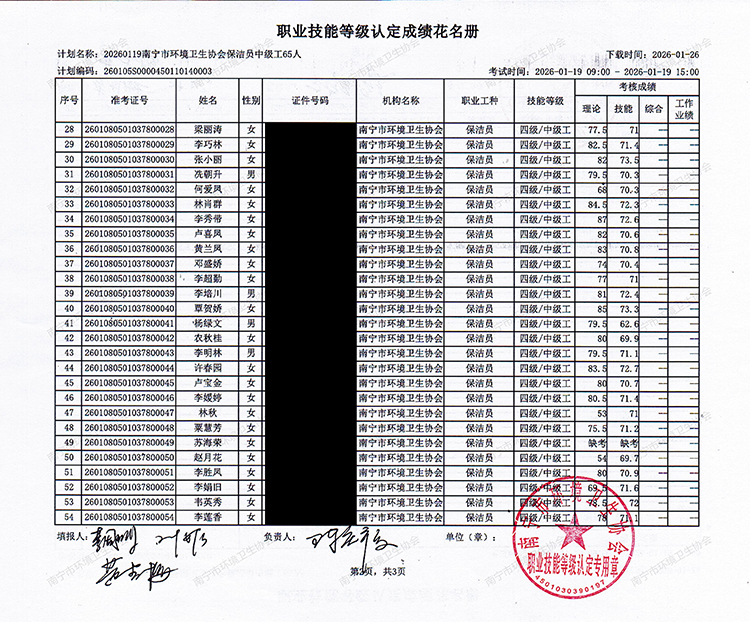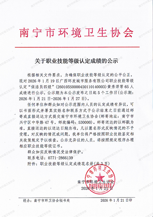 关于职业技能等级认定成绩的公示(计划编码:260105S0000450110140003)