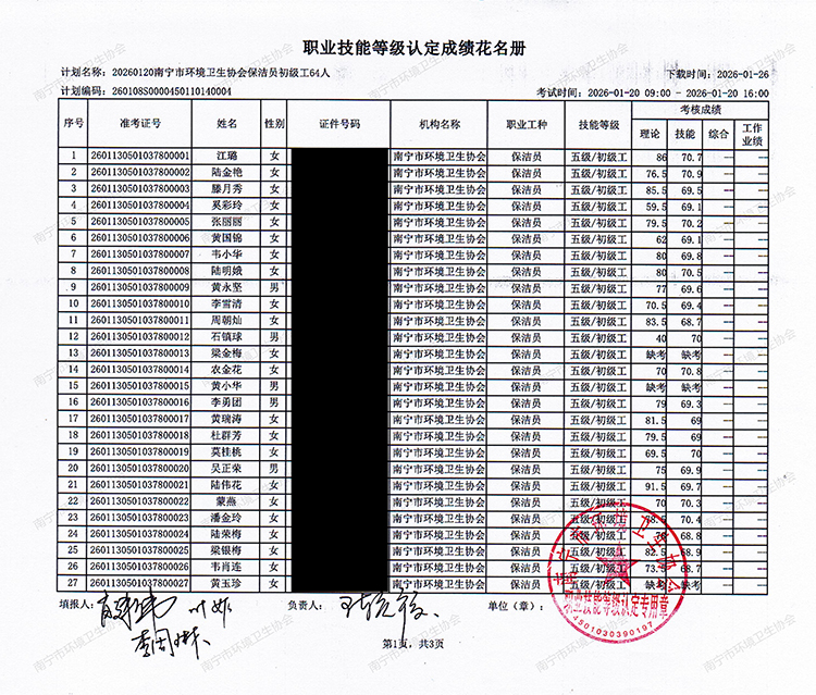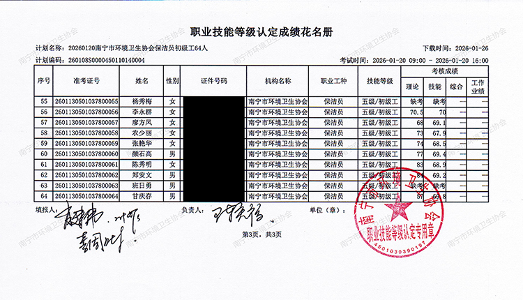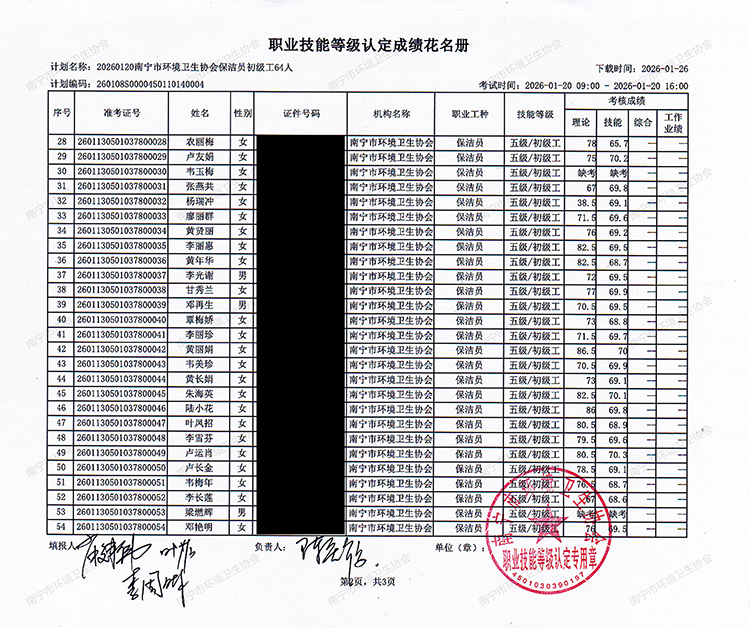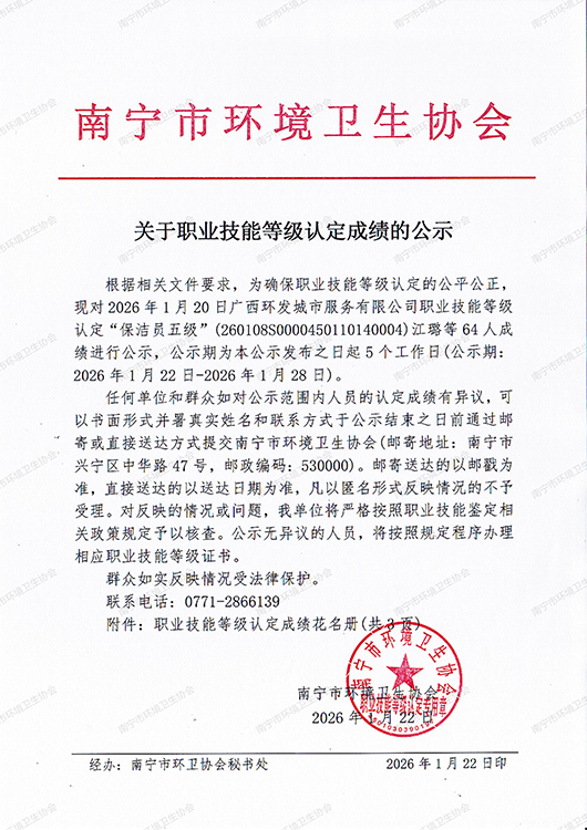 关于职业技能等级认定成绩的公示(计划编码:260108S0000450110140004)