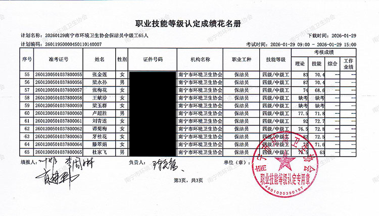 关于职业技能等级认定成绩的公示(计划编码:260119S0000450110140007)