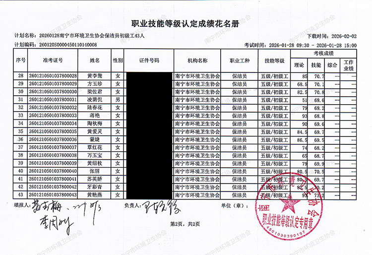 关于职业技能等级认定成绩的公示(计划编码:260120S0000450110140008)