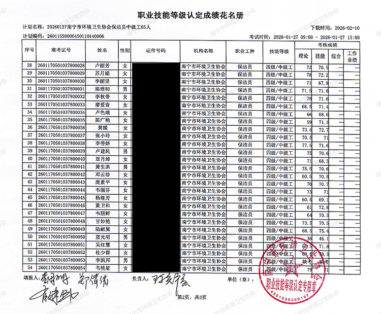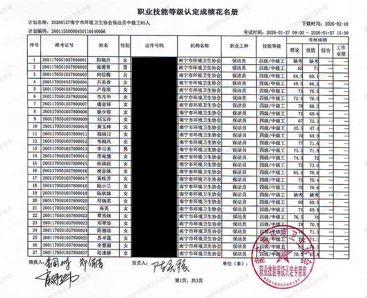 关于职业技能等级认定成绩的公示(计划编码:260115S0000450110140006)